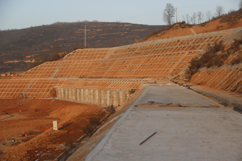 本工程開工時間 2012年12月竣工時間 2015年11月,歷時37個月。共完成抗滑樁7668m3,擋土板1429m3,灌注樁203.47m3,微型樁18741m,混凝土連系梁320.68m3,肋柱擋墻410.29m3,預應力錨索18450m,錨桿6750m,M7.5漿砌石擋墻5512.16m3,加筋土22358m3,仰斜排水孔4630m,截排水溝1878.45m3,滲水盲溝71.67m3,平臺硬化324.5m3,泄水孔1047.5m,土方553894m3,變形監測1750點次。