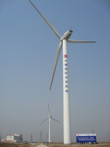 山東大唐東營風電場一期工程中#1~#24風機基礎樁基分項工程,主要為24臺風機基礎下樁基(含PHC管樁和鋼管混凝土鋼管灌注樁)的打樁施工。主要為堤內23臺,堤外1臺,總計24臺風機基礎下的PHC管樁(堤內)和鋼管混凝土鋼管灌注樁(堤外),以及110kv升壓站內生產綜合樓及庫房等主要生產建筑物基礎下的PHC管樁的施工。大唐東營風電場堤外十臺風機工程裝機容量為15MW。本風電場F24—F33風機(堤外10臺)的土建工程施工,含風機基礎承臺、架空線路獨立基礎、箱變基礎以及風機基礎內塔筒基礎環安裝澆筑等。