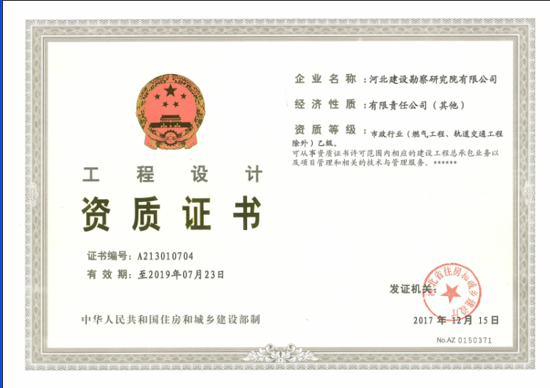 經(jīng)過(guò)艱苦努力,我公司于2017年12月15日取得了市政行業(yè)(燃?xì)夤こ獭④壍澜煌üこ坛猓┰O(shè)計(jì)乙級(jí)資質(zhì)證書(shū),為我公司進(jìn)一步拓展相關(guān)市政設(shè)計(jì)業(yè)務(wù),進(jìn)而從事市政建設(shè)工程總承包業(yè)務(wù)創(chuàng)造了良好的條件。