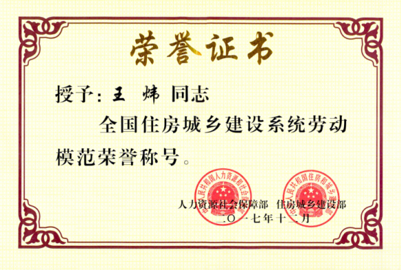 為進(jìn)一步激勵(lì)全國住房城鄉(xiāng)建設(shè)系統(tǒng)廣大干部職工的積極性和創(chuàng)造性,努力推動(dòng)住房城鄉(xiāng)建設(shè)工作上新臺(tái)階,人力資源社會(huì)保障部、住房城鄉(xiāng)建設(shè)部在全國住房城鄉(xiāng)建設(shè)系統(tǒng)內(nèi),開展了先進(jìn)集體和先進(jìn)個(gè)人的評(píng)選活動(dòng)。通過逐級(jí)推薦,由人力資源社會(huì)保障部和住房城鄉(xiāng)建設(shè)部最終審定,決定對(duì)197個(gè)先進(jìn)集體,381名先進(jìn)工作者,414名勞動(dòng)模范進(jìn)行表彰。我公司工會(huì)主席王煒同志榮獲全國住房城鄉(xiāng)建設(shè)系統(tǒng)勞動(dòng)模范榮譽(yù)稱號(hào)。