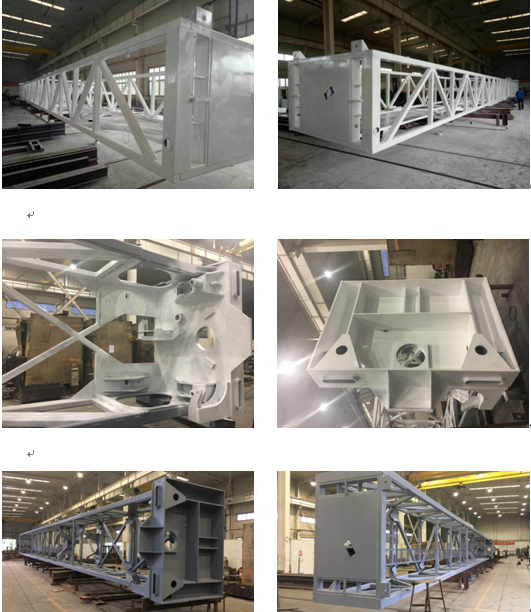 這種鉆塔是用于美國進口的煤礦爆破鉆機上,適應低溫環境下的沖擊鉆探工礦要求。鉆塔選用耐低溫、耐沖擊、可焊性較好的Q460D低合金高強度鋼,設計圖紙完善合理,并在原材料采購、焊材選用、焊前準備、焊接工藝、焊后熱處理、振動時效去應力等方面做了大量嘗試性工作,經過超聲波探傷27個關鍵部位,探傷結果符合GB/T11345-2013標準Ⅱ級的要求。