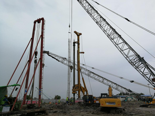 本項目施工高峰期投入150旋挖鉆機3臺,GPS-10回轉鉆機5臺,中方施工人員49人,緬方施工人員150人。本工程于2018年3月10日開工,9月02日竣工,共計177天,完成9個罐,直徑600mm樁基1250根,理論方量10650m³。整個施工期正值緬甸雨季,我公司克服種種施工困難,最終安全順利完成了總包方各個節點工期目標。
