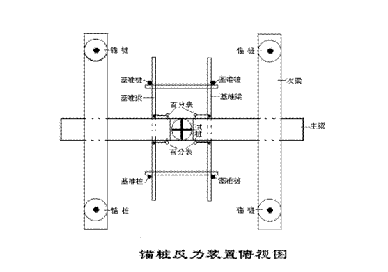 錨樁反力裝置就是將被測樁周圍對稱的幾根錨樁用錨筋與反力架連接起來,依靠樁頂?shù)那Ы镯攲⒎戳茼斊穑杀贿B接的錨樁提供反力,提供反力的大小由錨樁數(shù)量,反力架強(qiáng)度和被連接錨樁的抗拔力決定。錨樁反力裝置一般不會(huì)受現(xiàn)場條件和加載噸位數(shù)的限制,當(dāng)條件允許,采用工程樁作錨樁是最經(jīng)濟(jì)的。