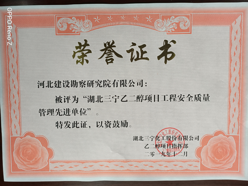 近日,由我公司參與承建的湖北三寧化工股份有限公司合成氨原料結構調整及聯產60萬噸/年乙二醇項目樁基工程項目,收到業主湖北三寧化工股份有限公司乙二醇指揮部發來的表揚信和榮譽證書,對項目部全體成員的突出表現給予了高度認可和評價,并授予“湖北三寧乙二醇項目工程安全質量管理先進單位”榮譽。我們將繼續保持優良的風貌,鐵軍的風范,圓滿完成后續工程!