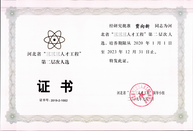 經(jīng)公司申報、石家莊市人力資源和社會保障局推薦,河北省“三三三人才工程”領(lǐng)導(dǎo)小組批準,我公司賈向新同志榮獲2019年度河北省“三三三人才工程”第二層次人選。