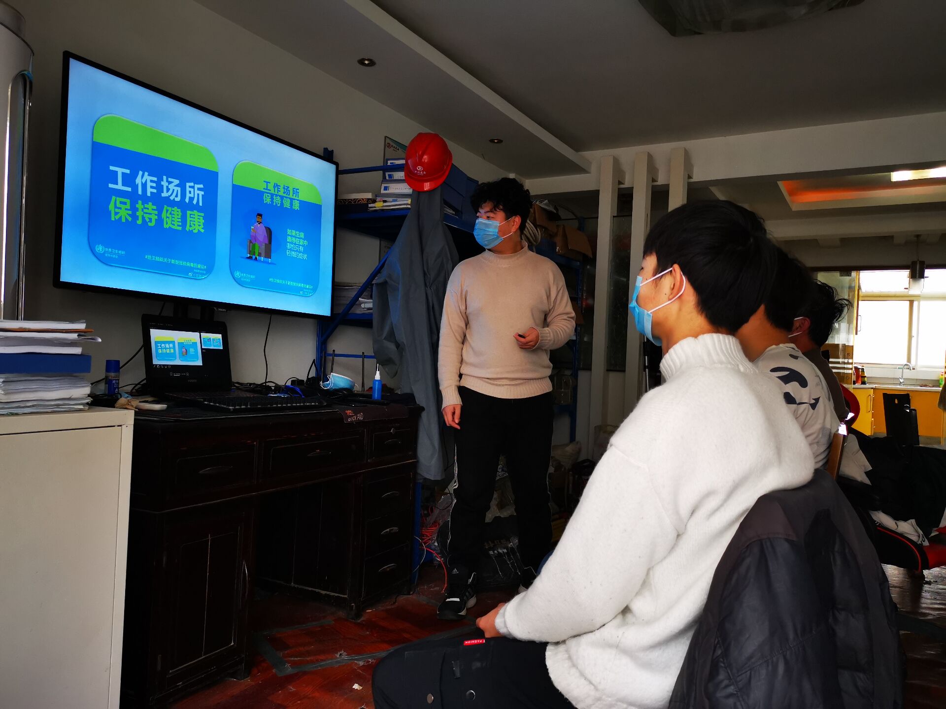 測(cè)量公司石家莊地鐵項(xiàng)目部、南通項(xiàng)目部、成都項(xiàng)目部、濟(jì)南項(xiàng)目部、新疆項(xiàng)目部、河南項(xiàng)目部、任丘項(xiàng)目部等,已局部開工或有人員值班的工地在接到通知后,第一時(shí)間成立項(xiàng)目疫情防控小組,明確責(zé)任,緊緊抓住“防”字,并結(jié)合項(xiàng)目實(shí)際情況編制了新冠肺炎應(yīng)急預(yù)案及疫情防控工作措施,組織項(xiàng)目現(xiàn)場(chǎng)人員進(jìn)行疫情防控培訓(xùn),學(xué)習(xí)疫情防控知識(shí),掌握防控技能,增強(qiáng)防范意識(shí),積極做好個(gè)人防護(hù)。