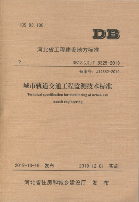 近日我公司主編的河北省工程建設地方標準《城市軌道交通工程監測技術標準》(DB13(J)/T8325-2019)由河北省住房和城鄉建設廳發布,于2019年12月1日起實施,正式出版發行。這是由我公司主編發行的第11項地方標準。