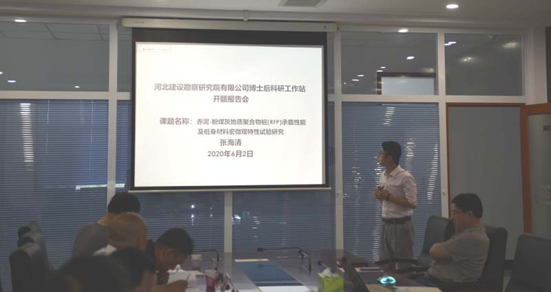 2020年6月2日下午,公司博士后工作站舉辦博士后研究人員張海清的開題報(bào)告會(huì)。由博士后工作站站長(zhǎng)聶慶科正高級(jí)工程師、河北省建筑科學(xué)研究院副院長(zhǎng)王維玉正高級(jí)工程師、北京交通大學(xué)白冰教授、河北科技大學(xué)張亞通教授、河北省生態(tài)環(huán)境廳謝劍鋒正高級(jí)工程師組成專家組,對(duì)張海清博士研究的《赤泥-粉煤灰地質(zhì)聚合物樁(RFP)承載性能及樁身材料宏微觀特性試驗(yàn)研究》開題報(bào)告進(jìn)行了評(píng)審,公司總經(jīng)理李華偉、省人力資源和社會(huì)保障廳、市人力資源和社會(huì)保障局有關(guān)領(lǐng)導(dǎo)參加了報(bào)告會(huì)。