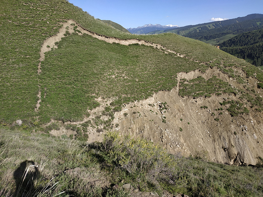 山體滑坡:白楊溝豐源煤礦生產調度樓北側邊坡出現了滑坡,滑坡體表面巖土體松散,在降雨條件下有進一步發生滑坡的可能。滑坡坡腳下有安全生產調度樓等建(構)筑物,如果再次發生滑坡,會危及生產調度樓及其周圍建筑物的人員生命和財產安全,因此需要對該滑坡進行勘查及治理,保證人員生命和財產安全。