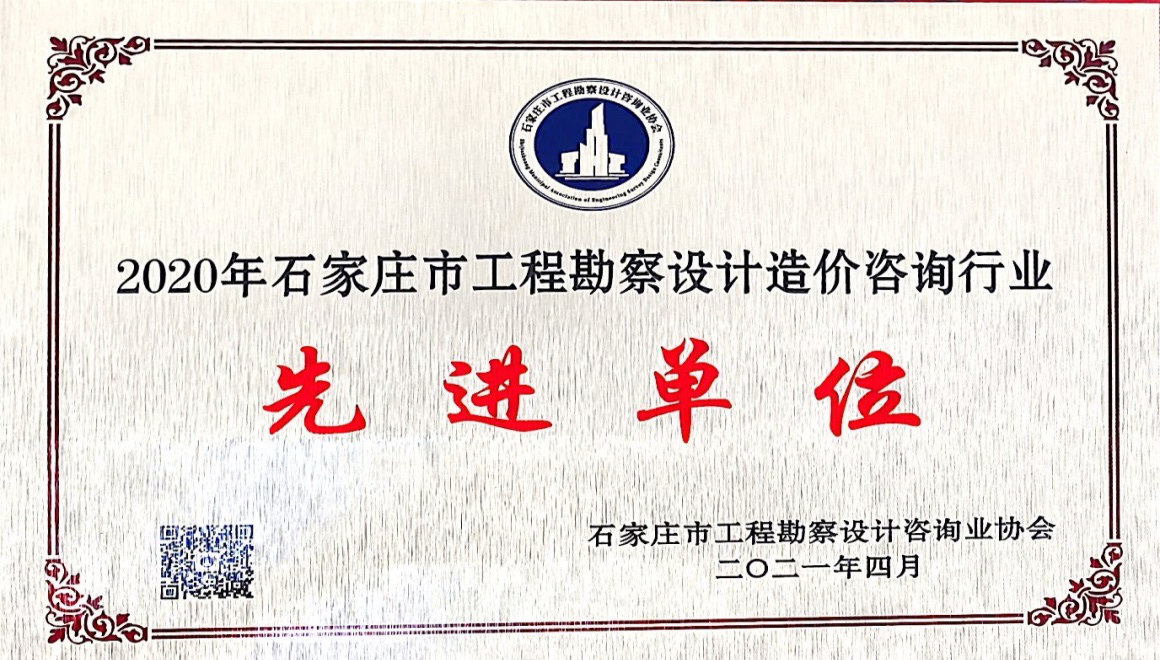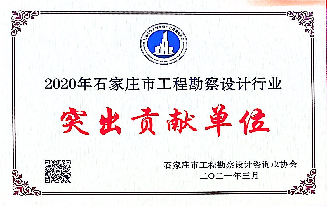我公司憑借在勘察設計行業的杰出貢獻和企業綜合實力,榮獲由石家莊市工程勘察設計咨詢協會評選的“2020年石家莊市工程勘察設計行業突出貢獻單位”和“2020年石家莊市工程勘察設計造價咨詢行業先進單位”兩項榮譽稱號。公司獲此殊榮,充分彰顯了我公司在行業內雄厚的綜合實力,進一步奠定了行業排頭兵的地位。
