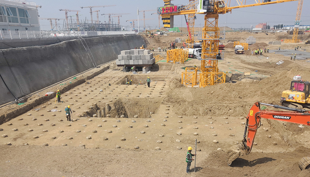 受中國雄安集團城市發展投資有限公司委托,我公司承擔了雄安新區容東片區 B1 組團安置房及配套設施項目的土方工程、基坑支護工程(樁錨支護,土釘墻和錨桿(索))、地基處理工程(水泥粉煤灰碎石樁)。
