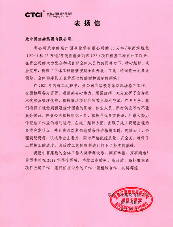 近期,公司連續收到業主及總包方發來的表揚信及榮譽稱號,對我公司所承擔的多個工程項目的生產組織、質量管控、安全文明施工等給予了充分肯定。