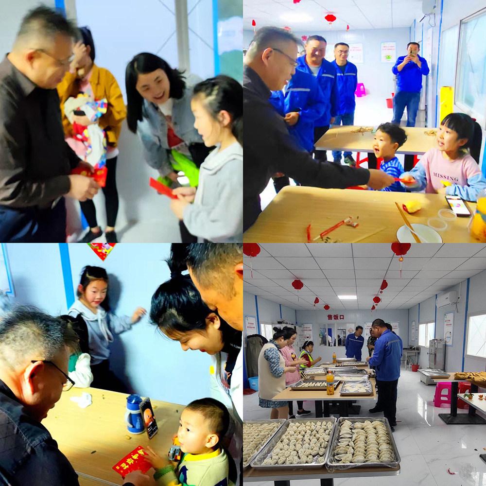 除夕之夜,項目部歡聲笑語、熱鬧非凡,洋溢著濃濃的春節氣息。李總與大家歡聚一堂,還為項目員工的孩子們準備了新年紅包,員工家屬們也參與其中,包起了年夜餃子,大家其樂融融一起喜迎新年,讓沒能回家過節的員工們切實感受到大家庭的溫暖。
