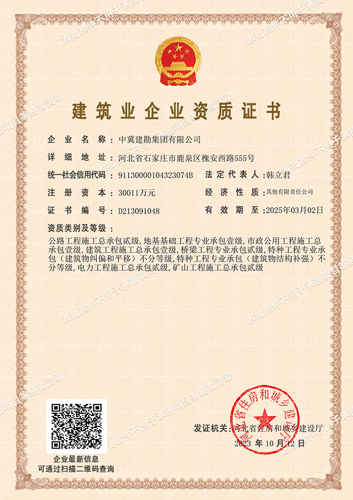 為拓展公司業(yè)務(wù)范圍,在公司領(lǐng)導(dǎo)的精心策劃下,經(jīng)過安全生產(chǎn)部的不懈努力,集團(tuán)公司于2023年10月12日經(jīng)河北省交通廳、河北省住建廳審核批準(zhǔn),成功取得了公路工程施工總承包貳級資質(zhì),該資質(zhì)的取得將為集團(tuán)公司拓展縣、鄉(xiāng)、村公路工程業(yè)務(wù)提供了先決條件,為增強(qiáng)地方市場的開拓能力、提高地方市場競爭力提供有力支撐,將在助力集團(tuán)公司高質(zhì)量發(fā)展、升級轉(zhuǎn)型上貢獻(xiàn)更大力量。