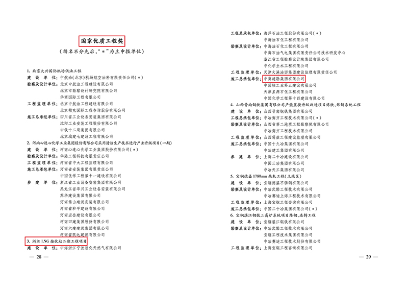 1、國家優質工程獎(金獎)