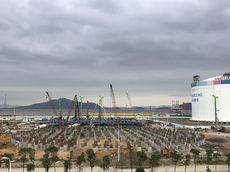 浙江LNG接收站二期工程項目是國家天然氣產供儲銷體系重點建設工程,項目在一期工程基礎上新增三座16萬方LNG儲罐及配套工藝設施。我公司承擔了3座16萬方儲罐的工程樁施工任務,工程樁于2018年7月5日開工,2018年11月29日完工,工程質量一次驗收全部合格,其中E罐工程樁Ⅰ類樁率99.5%,D、F罐工程樁Ⅰ類樁率98.05%。