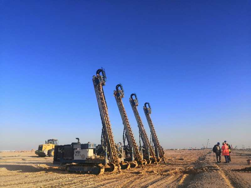 Dhafra PV2太陽能電站工程位于阿聯酋阿布扎比,由Dhafrah PV2 Energy Company LLC投資建設。工程共計完成直徑為300mm的H型鋼樁109504根,直徑為400mm的H型鋼樁34909根,混凝土包裹樁身2.05-2.8m。以及直徑為300mm的清掃機器人的樁1880根,直徑為450mm的機器人通訊塔的樁36根。