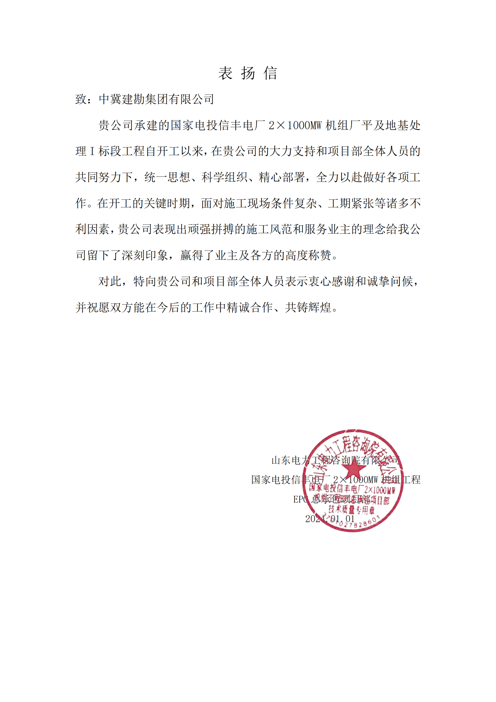 集團公司多個項目收到業主發來的表揚信和問候信