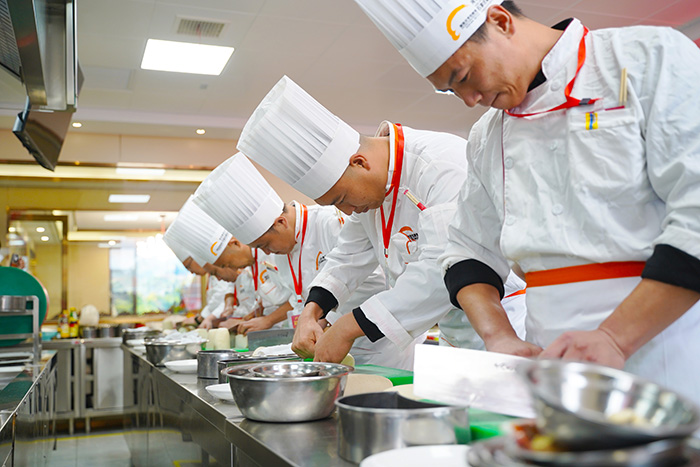 此次比武大賽共分為操作技能(基本刀功、指定菜品和自選菜品烹飪)和理論考試兩個項目,全面考驗炊事員們的專業(yè)技能。