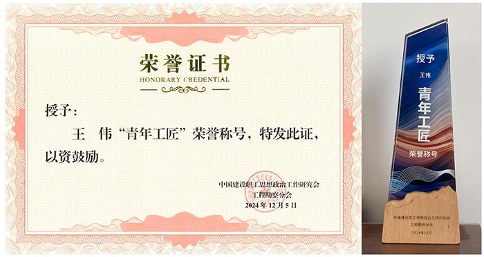 經公司積極申報推薦,中國建設職工思想政治工作研究會工程勘察分會嚴格審核,一公司經理王偉同志榮獲“青年工匠”榮譽稱號。