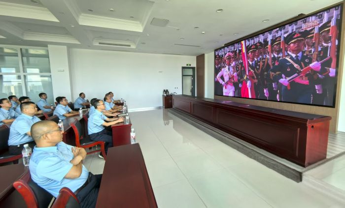 當威武雄壯的受閱方隊邁著鏗鏘有力的步伐走過,當各類現代化裝備依次亮相,當戰機編隊劃破長空,強大的陣容、恢宏的氣勢,讓觀看直播的職工們心潮澎湃,會議室里不時響起陣陣驚呼聲。